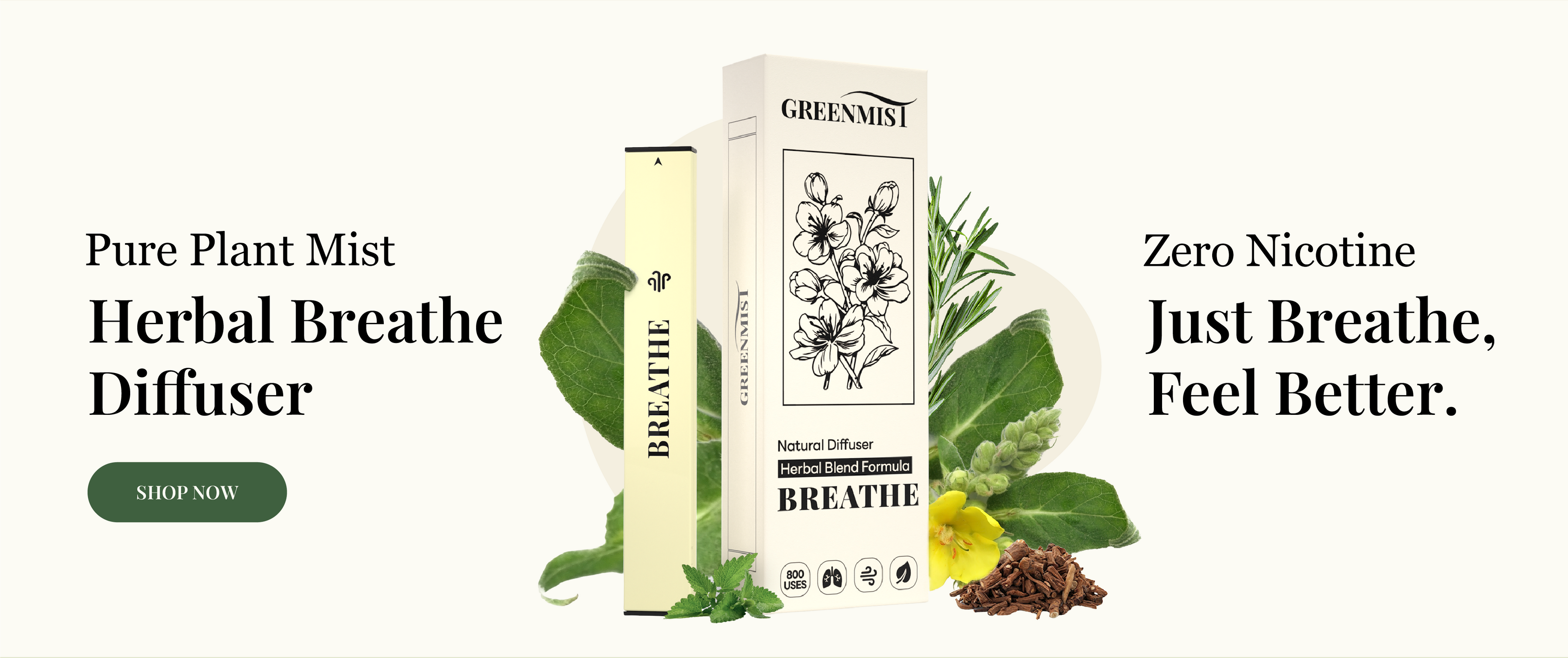 GreenMist diffusers are 100% nicotine-free and use natural herbal blends to promote relaxation and better breathing. They are lightweight, portable, and designed for smooth airflow making wellness as easy as breathing.